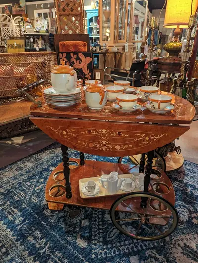 Host your next bridal shower, birthday celebration, or elegant gathering at our All Things Tea room. Located inside our antique store in Tallahassee, FL, this refined high-tea experience is available by reservation and offers a charming setting for unforgettable moments and photo-worthy spreads.